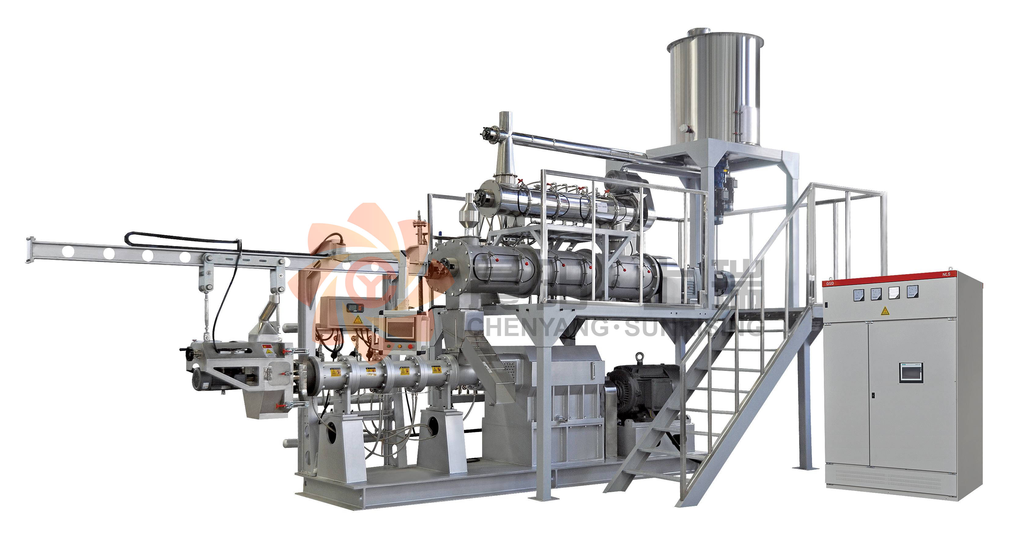 雙螺桿膨化機(jī)應(yīng)用領(lǐng)域涵蓋農(nóng)產(chǎn)品深加工早餐方便粥、營養(yǎng)米、方便米飯、早餐谷物食品、休閑膨化食品、拉絲蛋白、變性淀粉、寵物食品、水產(chǎn)飼料等加工領(lǐng)域。