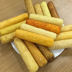 本生產(chǎn)線改變生產(chǎn)工藝流程可以生產(chǎn)夾心米果、米餅、芝麻棒、麥燒、醬油餅等產(chǎn)品。也可用于生產(chǎn)直接膨化型小食品,芝士球、玉米棒、麥香雞塊等產(chǎn)品;本生產(chǎn)烘干機(jī)有電熱型和燃?xì)庑涂晒┻x擇,根據(jù)產(chǎn)能大小合理設(shè)計烘干機(jī);調(diào)味設(shè)備有單滾筒調(diào)味機(jī),雙滾筒調(diào)味機(jī)、稱重式雙頭八角調(diào)味機(jī)