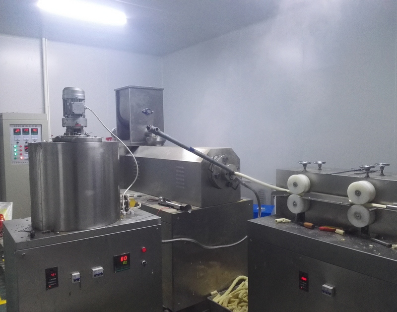 原料混合-膨化-夾心-整形切斷-烘干-噴油調(diào)味-冷卻-包裝