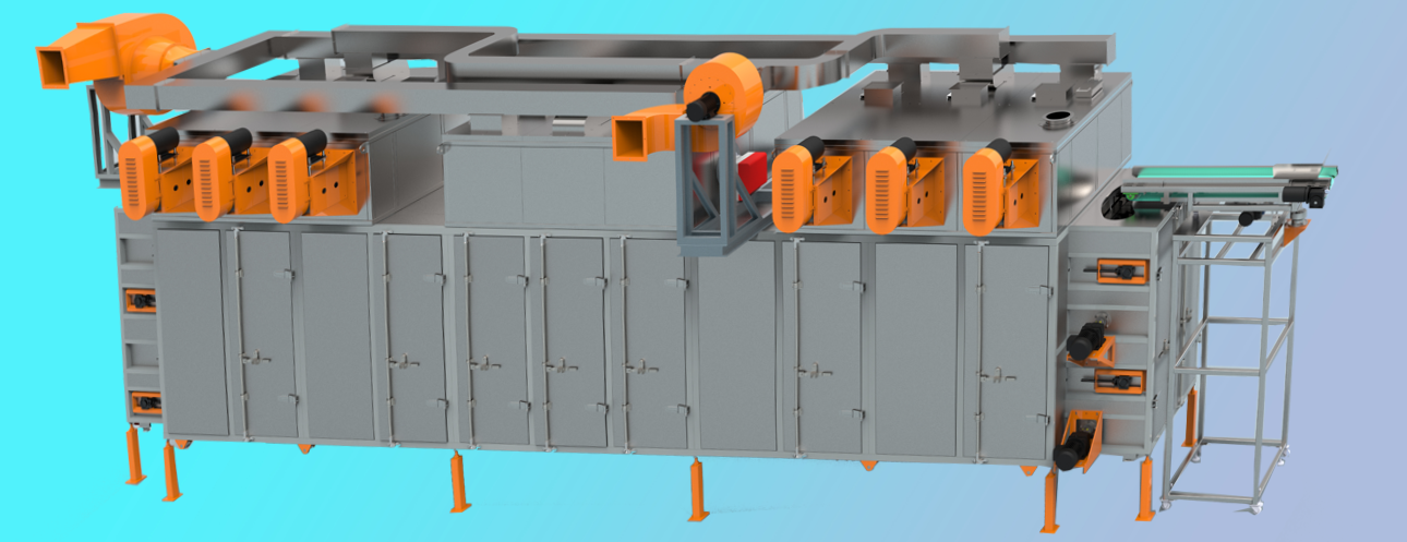 5、每2米為一個(gè)獨(dú)立干燥段,干燥段風(fēng)壓和風(fēng)速獨(dú)立循環(huán)控制,適用不同產(chǎn)量和不同產(chǎn)品的烘干。