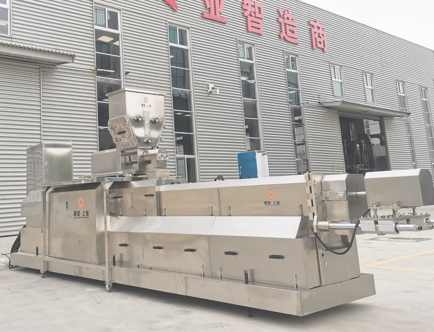 雙螺桿膨化機(jī)應(yīng)用領(lǐng)域涵蓋農(nóng)產(chǎn)品深加工早餐方便粥、營(yíng)養(yǎng)米、方便米飯、早餐谷物食品、休閑膨化食品、拉絲蛋白、變性淀粉、寵物食品、水產(chǎn)飼料等加工領(lǐng)域。