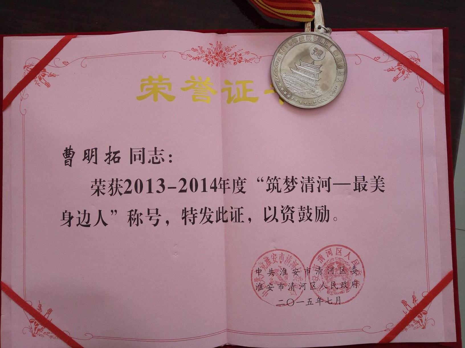 公司董事長(zhǎng)曹明拓榮獲2014年度“筑夢(mèng)清河,最美身邊人”稱號(hào),清河區(qū)政府舉辦了隆重的頒獎(jiǎng)儀式。